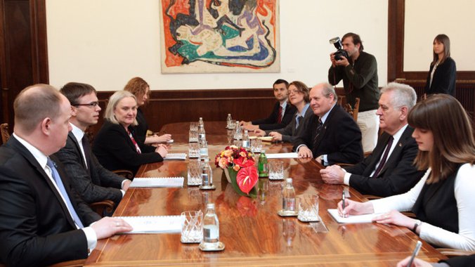 Predsednik Srbije Tomislav Nikolić sastao se sa ministrom spoljnih poslova Republike Estonije Svenom Mikserom kome je rekao da bi punopravno članstvo u EU bilo dodatan zamajac u napretku Srbije ali samo pod uslovom da joj se ne postavi zahtev za priznavanjem samoproglašene nezavisnosti Kosova i skrenuo pažnju na zapaljive izjave albanskih lidera u regionu.