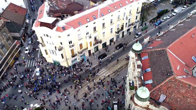 Kao što se može videti na osnovu fotografija, ispred zgrade Geozavoda gde se održava protest, skupila se šačica demonstranata - jedva malo više od 2.000.