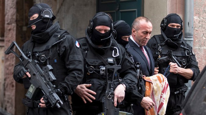 Haradinaj, nekadašnji vođa OVK a danas na čelu Alijanse za budućnost Kosova, uhapA!en je 4. januara na granici A vajcarske i Francuske po Interpolovoj poternici koju je za njim raspisala Srbija. Ministarstvo pravde Srbije je potom uputilo Francuskoj zahtev za njegovo izručenje uz svu prateću dokumentaciju o istrazi koja je protiv njega u toku. Haradinaj je nedelju dana nakon hapšenja pušten da odluku suda o zahtevu Srbije za ekstradiciju čeka na slobodi, ali mu je oduzet pasoš i zabranjeno da napušta teritoriju Francuske. Istraga protiv Haradinaja u Srbiji je pokrenuta 2004. godine, a u januaru je proširena novim optužbama i novim dokazima koji su prosleđeni sudu u Kolmaru. Haradinaju je suđeno u Haškom tribunalu za ratne zločine na KIM, ali je 2012. pravosnažno oslobođen svih optužbi. Srbija traži Haradinaja zbog sumnje da je izvršio krivična dela ratnih zločina protiv civilnog stanovništva na KIM u toku 1998. i 1999. godine, a reč je, kako je Beograd saopštio, o delima koja nisu bila predmet suđenja pred Haškim tribunalom.