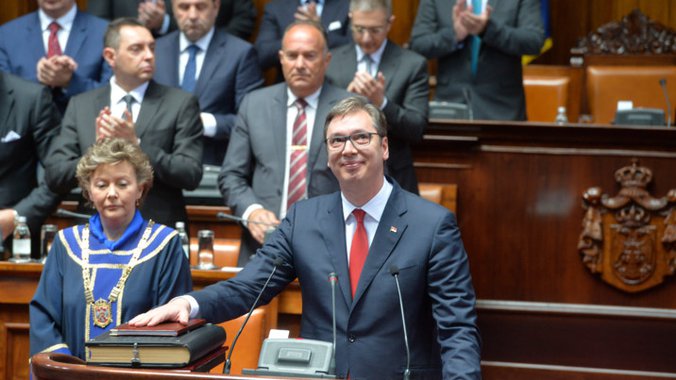 "Srbija je dobila predsednika koji će se boriti za nju svim srcem, svom snagom i energijom, u ime naroda i svih ljudi", rekao je Vučić poslanicima, citira Blumberg.