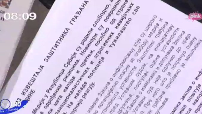 On je pokazao izveštaj zaštitnika građana Saše Jankovića iz 2009. godine u kojem piše da su te godine mediji u Republici Srbiji radili slobodno, a zatim je Vesić podsetio gledaoce da je baš te 2009. godine policija upala u redakciju lista "Borba" zbog pojedinih natpisa u tom mediju. Janković je u tom izveštaju dodao da su posledice izmene zakona o informisanju pozitivne.