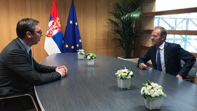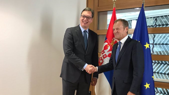 Vučić je izjavio u Briselu da je dobio čvrstu reč predsednika Evropskog saveta Donalda Tuska da će Srbija postati članica EU kada ispuni obaveze.