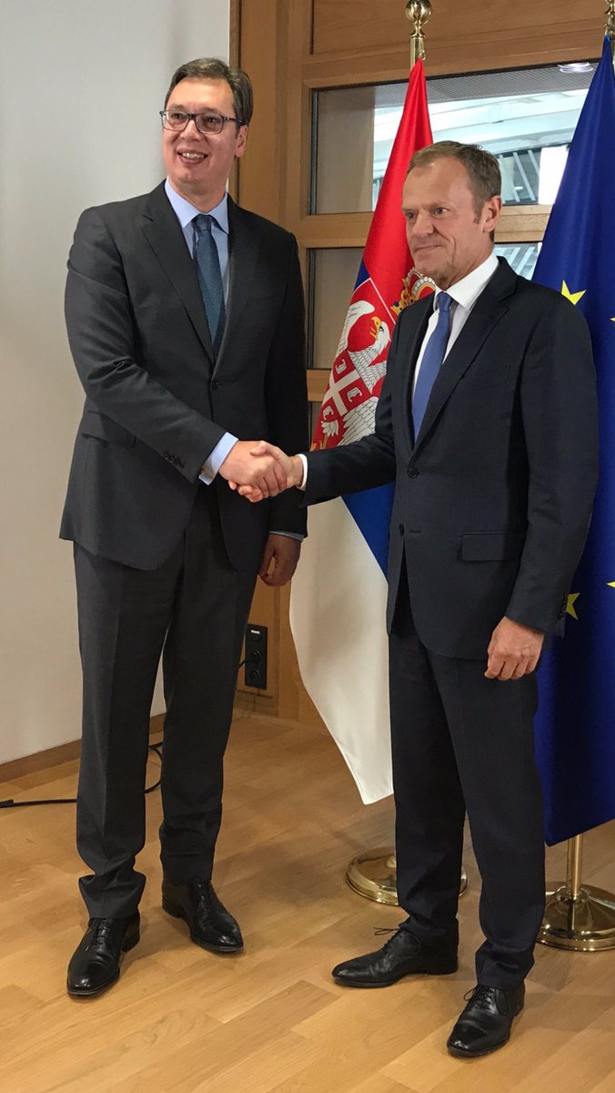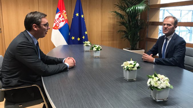 Vučić je tokom svojih prethodnih sastanka sa najvišim EU zvaničnicima, šeficom EU diplomatije Fedrikom Mogerini i predsednikom Evropske komisije Žanom Klodom Junkerom, od kojih je dobio jasnu i nedvosmislenu podršku za evrointegracioni put naše zemlje, zatražio ubrazanje procesa pristupanja Srbije i jasne okvire.