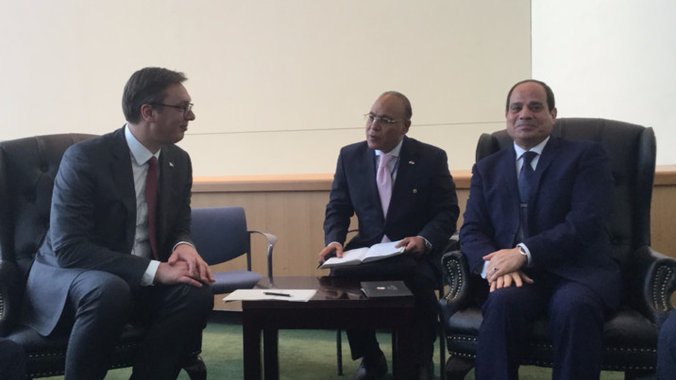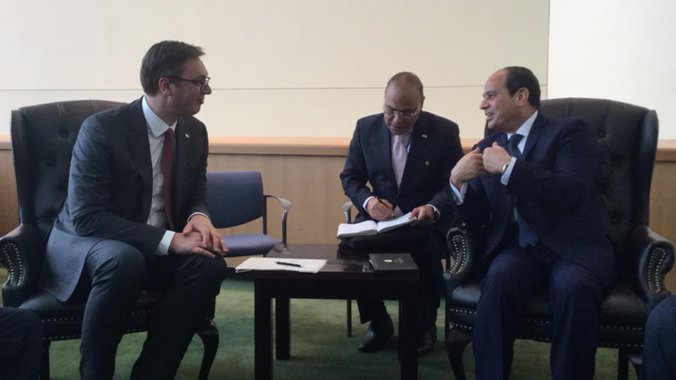 Predsednik Republike Srbije Aleksandar Vučić sastao se danas u Njujorku, nakon sednice Generalne skupštine Ujedinjenih nacija, sa predsednikom Arapske Republike Egipat Abdelom Fatahom El-Sisijem sa kojim je razgovarao o bilateralnim odnosima, saradnji u oblasti turizma i podršci Srbije u globalnoj borbi protiv terorizma.