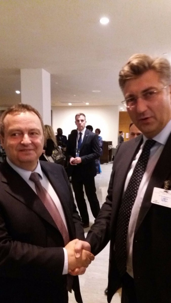 Dačić i predsednik hrvatske vlade Andrej Plenković su tokom kraćeg susreta razmotrili bilateralne odnose dve zemlje, kao i situacija u regionu.