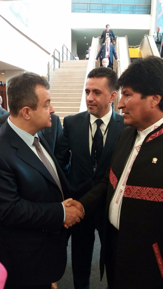 Na marginama zasedanja Generalne skupštine, ministar Dačić imao je i kratak susret sa predsednikom Višenacionalne Države Bolivije Evom Moralesom.