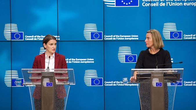 Ona je nakon sastanka Saveta za stabilizaciju i pridruživanje između EU i Srbije naglasila je da je Srbija u potpunosti usresre?ena na svoj evropski put i ponovila da su EU i evrointegracije "najveći strateški cilj Republike Srbije"