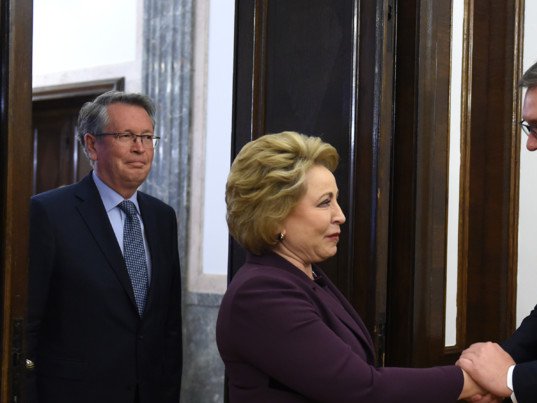 Kako se navodi u saopštenju, Vučić i Matvijenko su razgovarali o odnosima dveju zemalja, situaciji u regionu i predstojećoj poseti srpske delegacije Moskvi.