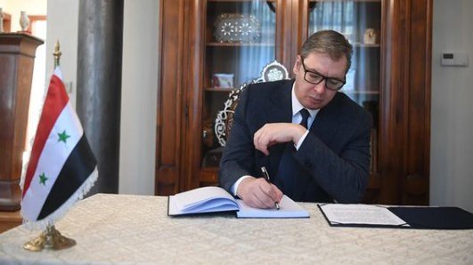 Predsednik Srbije Aleksandar Vučić upisao se danas u knjigu žalosti u ambasadi Sirijske Arapske Republike.
