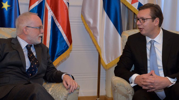 Predsednik Srbije Aleksandar Vučić primio je danas ambasadora Velike Britanije Denisa Kifa, koji ga je obavestio o toku pregovora o izlasku Velike Britanije iz Evropske unije i naglasio da to ne umanjuje podršku njegove zemlje evropskom putu Srbije.