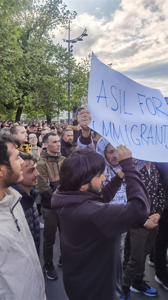 Sada su se na skupu pojavili i migranti. Oni se bore za azil.