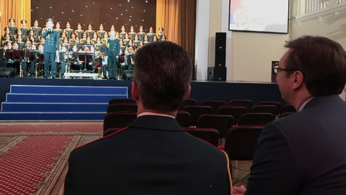 Na sva tri sprata ove zgrade naći ćete veoma vredne slike ruskih umetnika - i onih koji su živeli i radili u Srbiji, kao i onih koji su živeli i radili u Rusiji. Preko puta iz ove zgrade, u centru Beograda, nalazi se park po imenu Hor Aleksandrov, koji je u Srbiji bio mnogo puta u najtežim vremenima. Tokom NATO agresije 1999. godine, Hor Alekandrov je bio sa nama, uvek su bili ti ljudi sa nama, i ova užasna tragedija u Sočiju nas je zaista zastrašila. A sada, kada je ovaj veliki ansambl obnovljen, ponovo su došli u Beograd, a mnogi ljudi su došli na koncert - bilo je jednostavno nemoguće naći slobodno mesto za gledanje i slušanje hora.