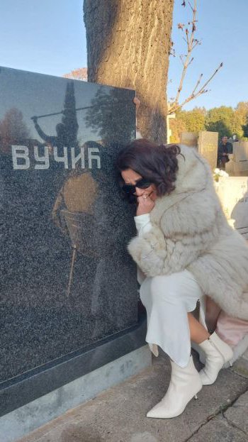 Glumica Dušanka Stojanović Glid objavila je morbidnu fotografiju na svom Fejsbuk profilu kako plače na grobu pored nadgrobnog spomenika na kom piše Vučić.