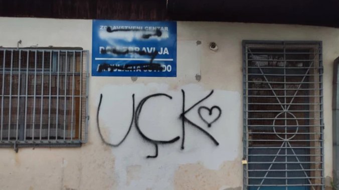 Na ambulanti u etnički mešovitom selu Suvi Do nadomak Kosovske Mitrovice, u subotu je ispisan grafit ozloglašene terorističke organizacije UČK, a ove preteće poruke primetili su zaposleni.