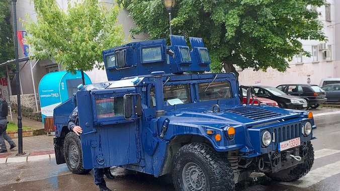 Na ulazu u Banjsku nalazi se jedno oklopno vozilo specijalnih policijskih snaga tzv. Kosova i vozilo Euleksa, pripadnika Kfora nema.