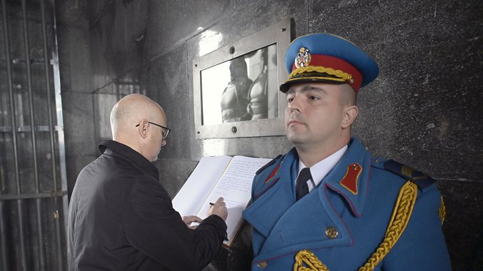 Posle polaganja venca, uz intoniranje himne Republike Srbije i svečani stroj Garde Vojske Srbije, ministar odbrane upisao je u spomen-knjigu: