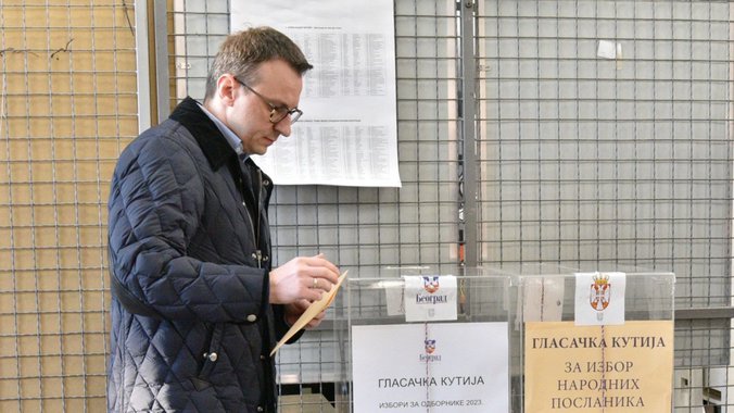Član Predsedništva Srpske napredne stranke i direktor Kancelarije za Kosovo i Metohiju Petar Petković glasao je jutros na biračkom mestu u Školi za dizajn, na Savskom vencu.