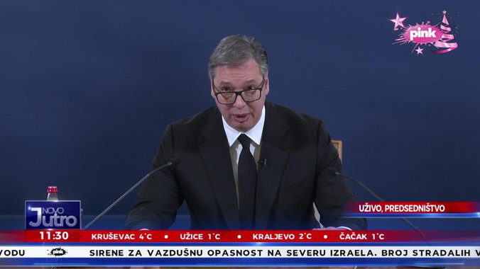 Predsednik Republike Srbije Aleksandar Vučić obratio se javnosti iz zgrade Generalnog sekretarijata predsednika Republike.