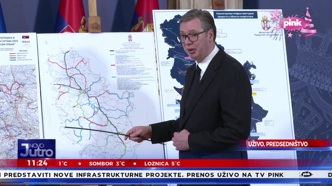 - Dve milijarde evra ćemo potrošiti, ali će nam spojiti Sobmor i Kikindu. Gradimo auto-put punog profila Beograd - Zrenjanin i Zrenjanin - Novi Sad, koji će da se spušta do Rume. Nastavljao saobraćajnicu ka Loznici. SVe su potpisani ugovori. Imamo i 19 km Kuzmin - Sremska Rača. To su ogromni novci. To je potpuno novi krvotok Srbije što se tiče auto-puteva. Za nekoliko meseci će biti gotova beza saobraćajnica do Požarevca i nastavljamo dalje ka Gradištu i Golupcu. Veliki projekat je obilaznica oko Kragujevca, koja će da spoji sa moravskim koridorom koji spaja Čačak i Kraljevo. Završavamo do Požege. Tunel ispod Jelice nam pravi probleme, zasad je najduži. reteći će ga fruškogorski. Radi se put do Boljara i Duga Poljana - Nova Varoš će biti brza saobraćajnica koja će da spaja put ka Prijepolju i put ka Crnoj Gori, da ne bismo odsekli Prijepolje.