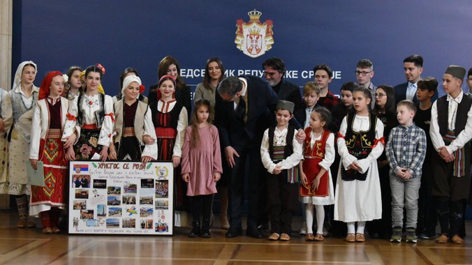 Predsednik Republike Srbije Aleksandar Vučić primio je danas, na Badnji dan decu srpske nacionalnosti iz Republike Severne Makedonije.