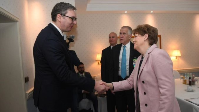 Vučić je naglasio potrebu za nastavkom dijaloga u cilju rešavanja sve jačih pritisaka sa kojima se svakodnevno suočava srpski narod na KiM i zahvalio se na podršci SAD u pronalaženju mirnog i održivog rešenja ovog pitanja.