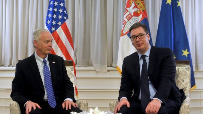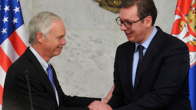 Predsednik Srbije Aleksandar Vučić primio je večeras, u vili Mir, američkog senatora Rona Džonsona, a nakon razgovora su se obratili medijima.