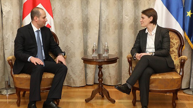 Predsednica Vlade Srbije Ana Brnabić ocenila je u današnjem razgovoru sa potpredsednikom Vlade i ministrom spoljnih poslova Gruzije Miheilom Džanelidžeom da su Srbija i Gruzija prijateljske države.