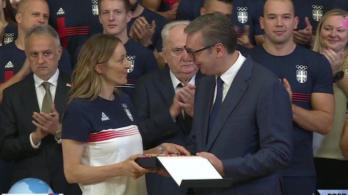 Predsednik Vučić uručio je državnu zastavu Maji Ognjenović, koju će nositi na Olimpijskim igrama u Parizu.