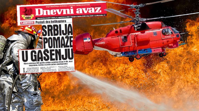 Međutim, dok je većina medija u BiH prećutala ovu pomoć ili je minimalizovala, Dnevni avaz se istakao kao jedini medij koji je pošteno i objektivno izvestio o značaju ove intervencije iz Srbije. Na naslovnoj strani Dnevnog avaza istaknut je naslov „Srbija pomaže u gašenju“, uz dodatak da se BiH bori protiv požara "naprtnjačama", aludirajući na nedostatak opremljenosti i spremnosti Sarajeva da samostalno odgovori na ovu prirodnu katastrofu.