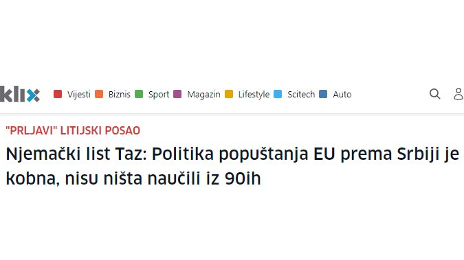 Jadikovke iz Sarajeva pokazale su pravu istinu o tome zašto Sarajevo, Priština, Zagreb i Podgorica podržavaju proteste lažnih ekologa u Srbiji, ali zašto i razni levičarski portali po Evropi, koji podržavaju tezu da su Srbi genocidni, te da je tzv. Kosovo šiptarsko, takođe pumpaju kampanju protiv predsednika Aleksandra Vučića i Srbije.