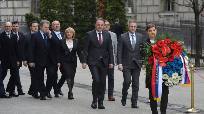 Predsednica Vlade Srbije Ana Brnabić i članovi njenog kabineta položili su venac na spomen ploču nekadašnjem premijeru Zoranu Ðinđiću u dvorištu vlade povodom 15. godišnjice njegovog ubistva.