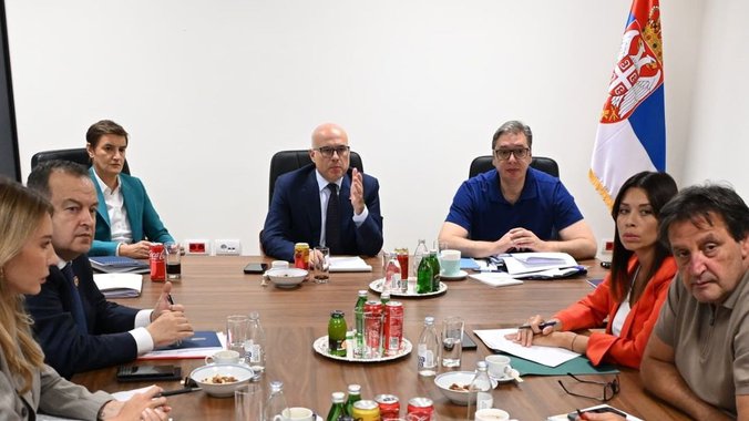 Predsednik Republike Srbije održao je sastanak sa predsednicom Narodne skupštine Republike Srbije Anom Brnabić, predsednikom Vlade Srbije Milošem Vučevićem, načelnikom Generalštaba vojske Srbije generalom Milanom Mojsilovićem i grupom ministara Vlade Republike Srbije.