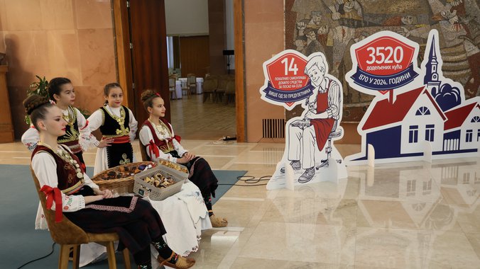Današnju svečanost u Palati Srbija upotpunile su boje i ukusi iz raznih krajeva Srbije. Gosti iz metropole naivnog slikarstva, sela Kovačice priredili su malu izložbu naive, vredne članice Udruženja žena “Šimanovčanke” prikazale su radionicu tkanja, veza i heklanja, a domaćice iz Ade najslađi deo Miholjskih sureta uz tradicionalne ukuse Vojvodine. Prisutni na današnjoj svečanosti uživali su i u nastupu KUD Kupinik.