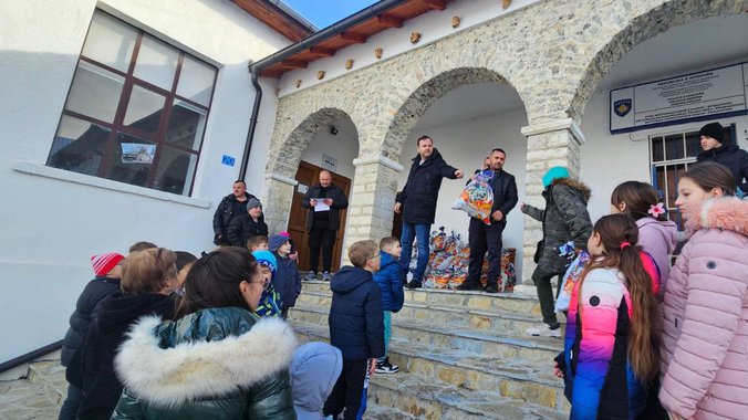 Novogodišnji paketići uručeni na Badnji dan deci u Orahovcu i Velikoj Hoči, kao poklon predsednika Srbije Aleksandra Vučića.
