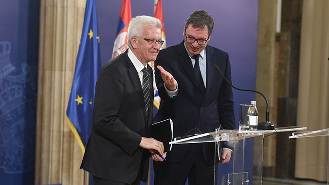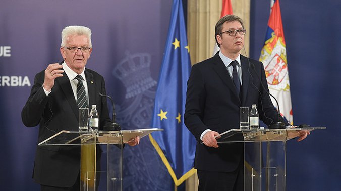 - Sada sam konačno imao priliku da se odazovem vašem pozivu. Sada imam to čast da budem ovde sa velikom delegacijom, i to pokazuje da mi zaista ozbiljno radimo na tome da produbimo naše odnose - rekao je premijer nemačke savezne pokrajine Baden-Virtemberg Vinfrid Krečman.