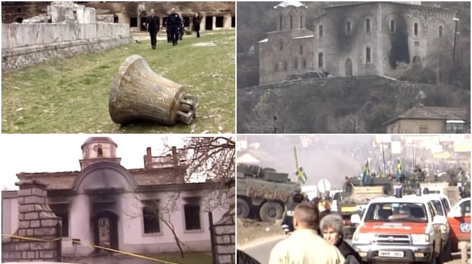Tokom nereda su Albanci najpre u Kosovskoj Mitrovici, a zatim i u drugim delovima Kosova i Metohije, ubili najmanje osmoro i proterali više od 4.000 Srba, i uništili ili oskrnavili više od 35 crkava i manastira.