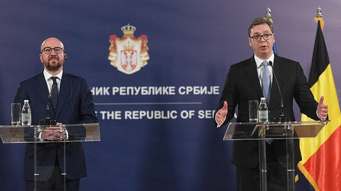 Predsednik Srbije Aleksandar Vučić nakon razgovora sa belgijskim premijerom Šarlom Mišelom o evropskim integracijama Srbije, bilateralnim odnosima i regionalnoj saradnji obratio se medijima.