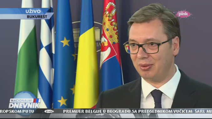 Predsednik Srbije je, nakon zajedničkog obraćanja, odgovarao na pitanja novinara Televizije PInk. On je istakao da je važno da se u ove tri zemlje i u većem delu EU govori sa značajem i poštovanjem o Srbiji.