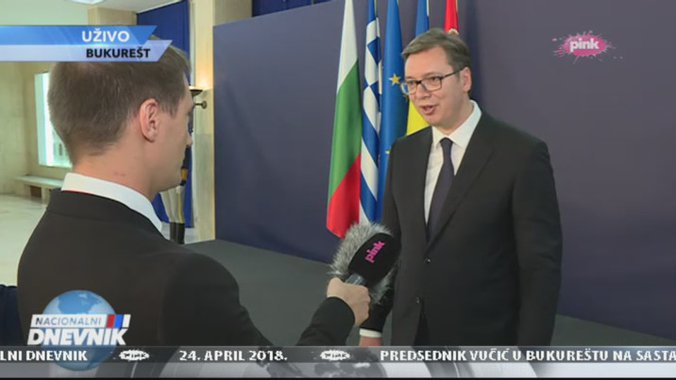 Predsednik Srbije je, nakon zajedničkog obraćanja, odgovarao na pitanja novinara Televizije PInk. On je istakao da je važno da se u ove tri zemlje i u većem delu EU govori sa značajem i poštovanjem o Srbiji.