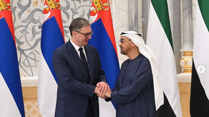 Vučić je rekao da je predsednik UAE šeik Mohamed bin Zajed al Nahjan svojim gostoprimstvom ukazao izuzetnu čast čitavoj Srbiji ne samo njemu lično, navodeći da je Bin Zajed prvi put lično došao po svog gosta u hotel.