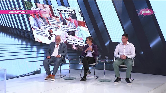 "I sedi opušten, pije sa tužiocem za organizovani kriminal. Ako mene pitate, on je organizator kriminalne grupe, jer je kriminalna grupa ona koja je zauzela, okupirala naše fakultete, privatizovala ih i od njih napravila svoju političku stranku", rekla je Brnabić.