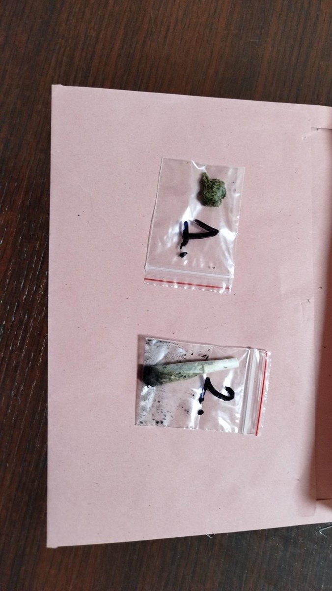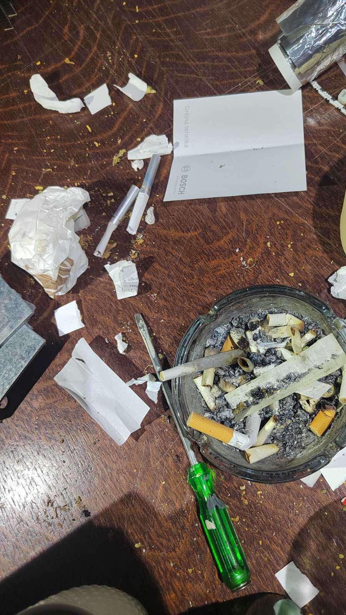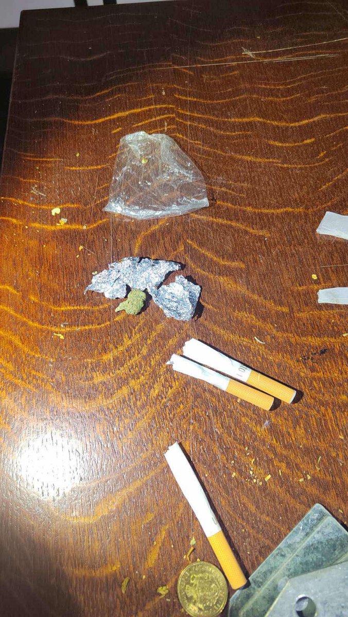 Policija je pronašla nagorenu ručno pravljenu cigaru marihuane, kao i bat te opojne droge.