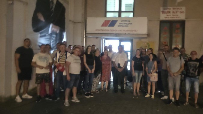 Kako se može videti na fotografiji, pristalice SNS-a su i u Novom Bečaju izašle ispred svoje stranke kako bi je branili od najavljenih napada blokadera.