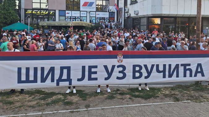 Tamo je trenutno, kako saznajemo, 450 simpatizera najveće stranke u Srbiji, a okupljeni su u jednom trenutku počeli da skandiraju "Aco, Srbine".