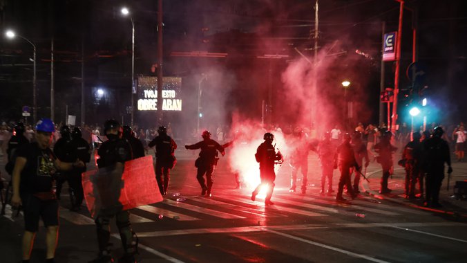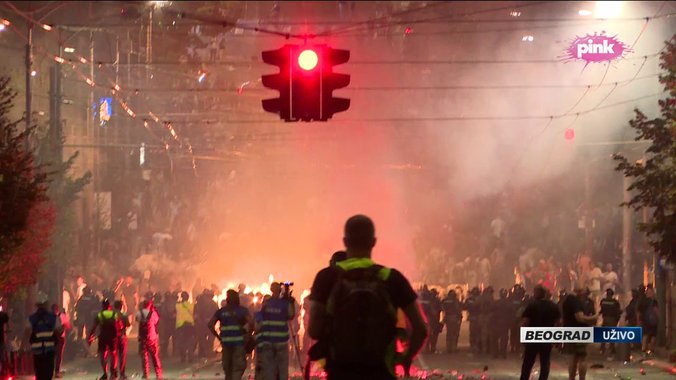 Beograd je i večeras bio poprište nasilnih protesta. Razjareni blokaderi su u nekoliko navrata nasrtali na policiju, zasipali ih kamenicama, flašama, bacali na njih petarde i vatromet.