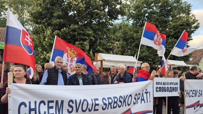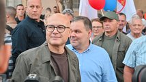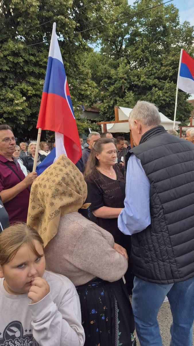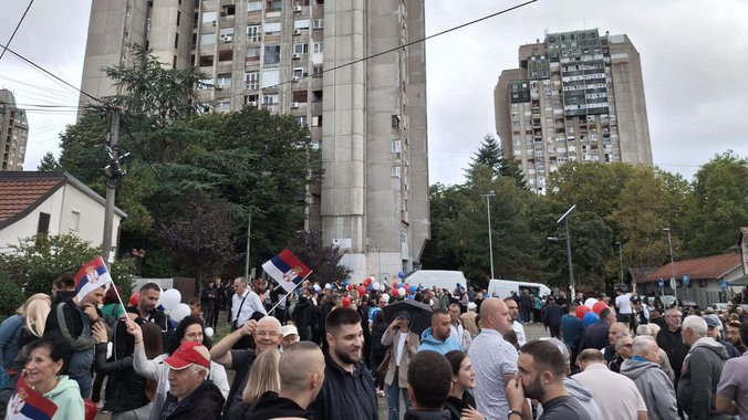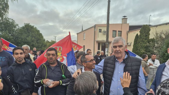 Demo Beriša je sa građanima na ulici. Vijore se zastave Srbije, kao i zastava Albanaca u Srbiji.