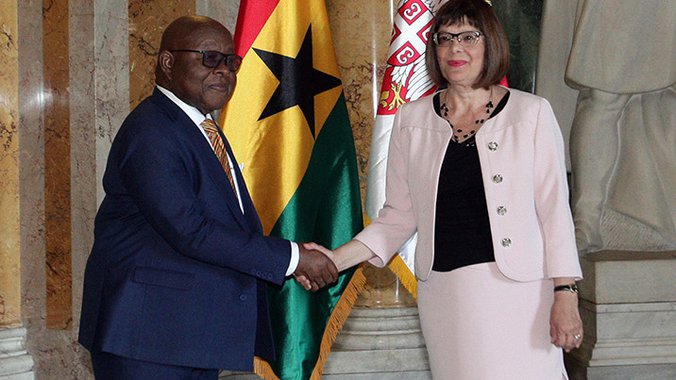 Predsednik parlamenta Gane kazao je na sastanku sa srpskom koleginicom da će skrenuti pažnju ministru spoljnih poslova i predsedniku Gane, koji kako je rekao, uživa veliku reputaciju u svetu, da dalje ragzovaraju o pitanju Kosova i Metohije.