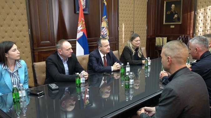 Potpredsednik Vlade i ministar unutrašnjih poslova Ivica Dačić, zajedno sa direktorom policije generalom policije Draganom Vasiljevićem, primio je danas u Palati Srbija pripadnike Ministarstva unutrašnjih poslova Vladimira Penezića, Strahinju Bjelića i Marka Marinkovića, koji su pešačili do manastira Hilandar kako bi pružili podršku i prikupili novčana sredstva za pomoć deci oboleloj od retke bolesti, u javnosti poznatoj kao „deca leptiri“, i iskazao im priznanje i zahvalnost za ovaj humani podvig.