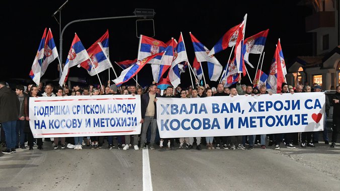 Oni su nosili transparente na kojima piše - Podrška srpskom narodu sa Kosova i Metohije i Hvala vam heroji sa Kosova i Metohije!