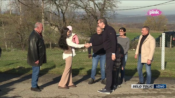Predsednik Srbije Aleksandar Vučić došao je danas u posetu porodici Janković u selu Tolić kod Mionice koja ima farmu za uzgoj i proizvodnju živine i konzumnih jaja.